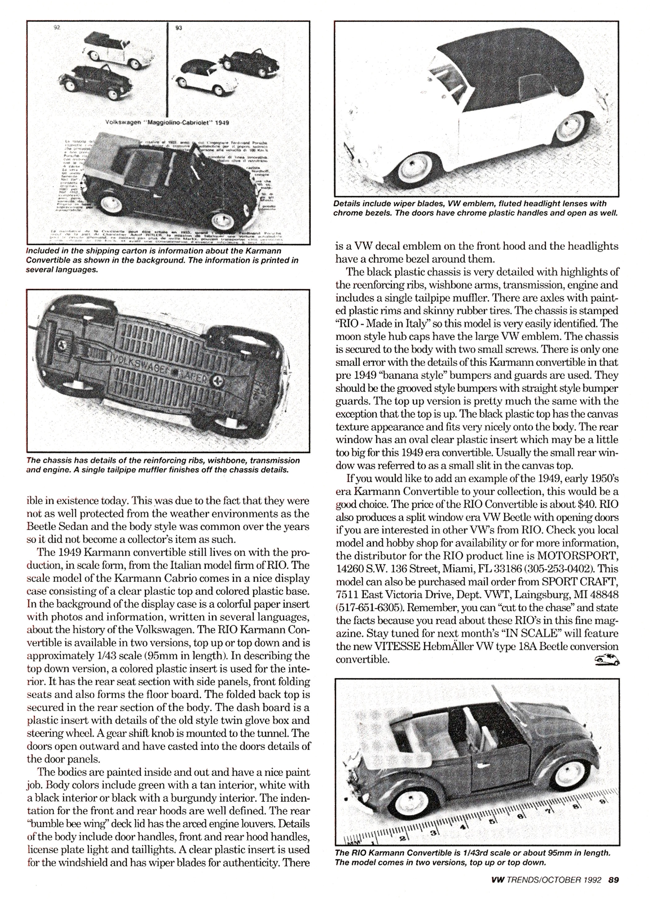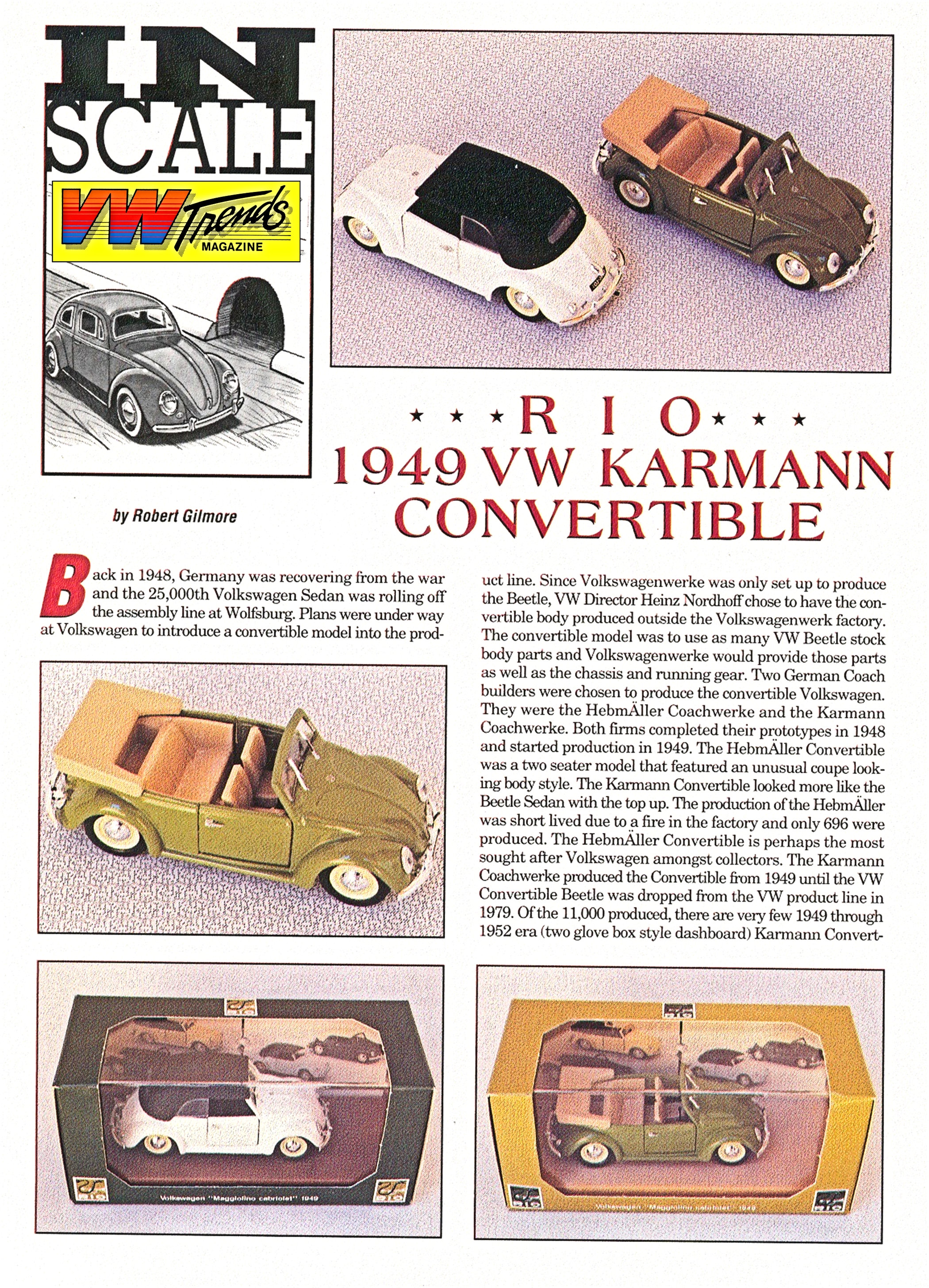 Attention In Scale readers! Rio, the Italian model manufacturer, has just released to the German market an impressive 1/43 scale (95mm in length) Karmann Cabrio Volkswagen model.