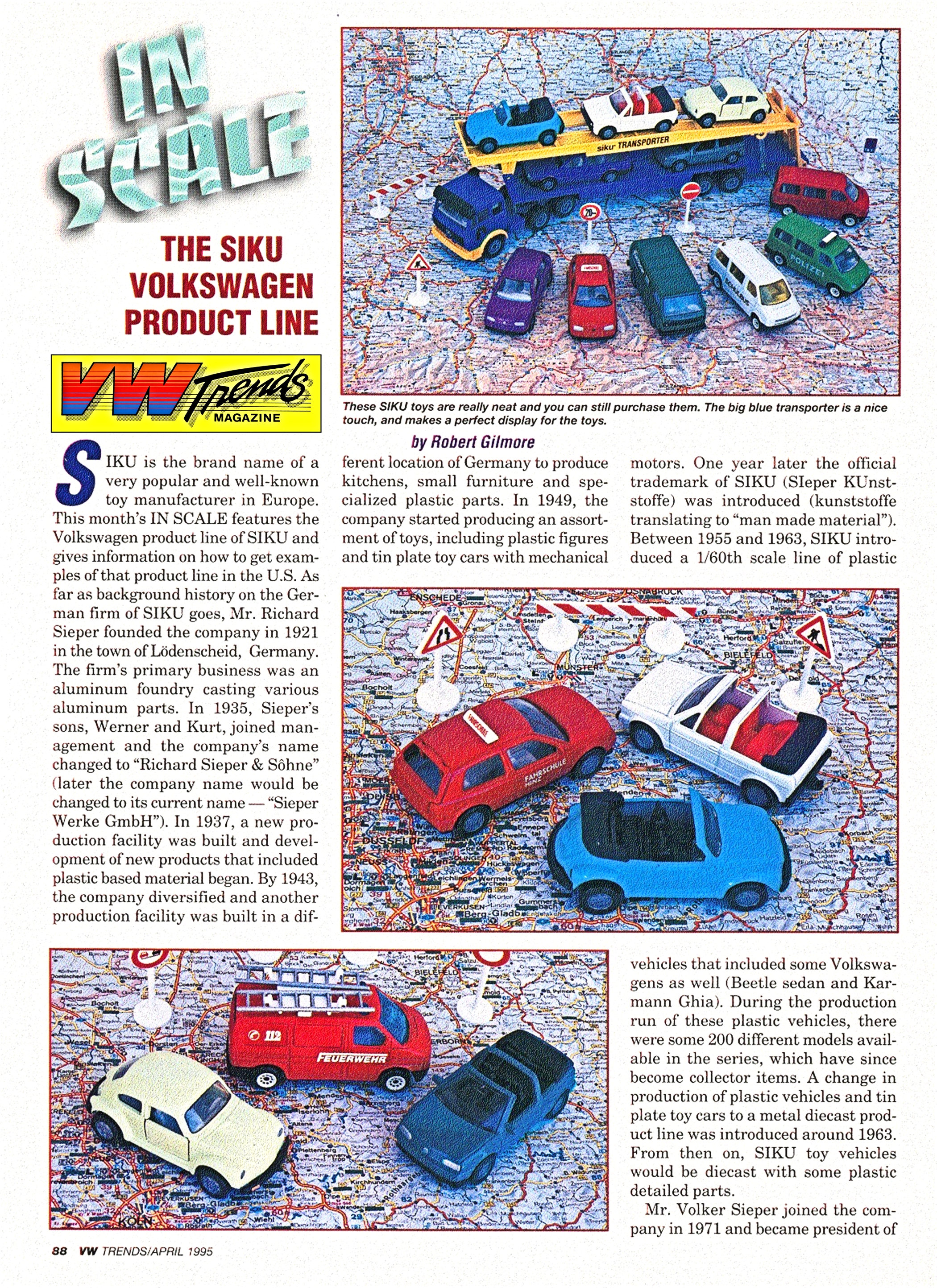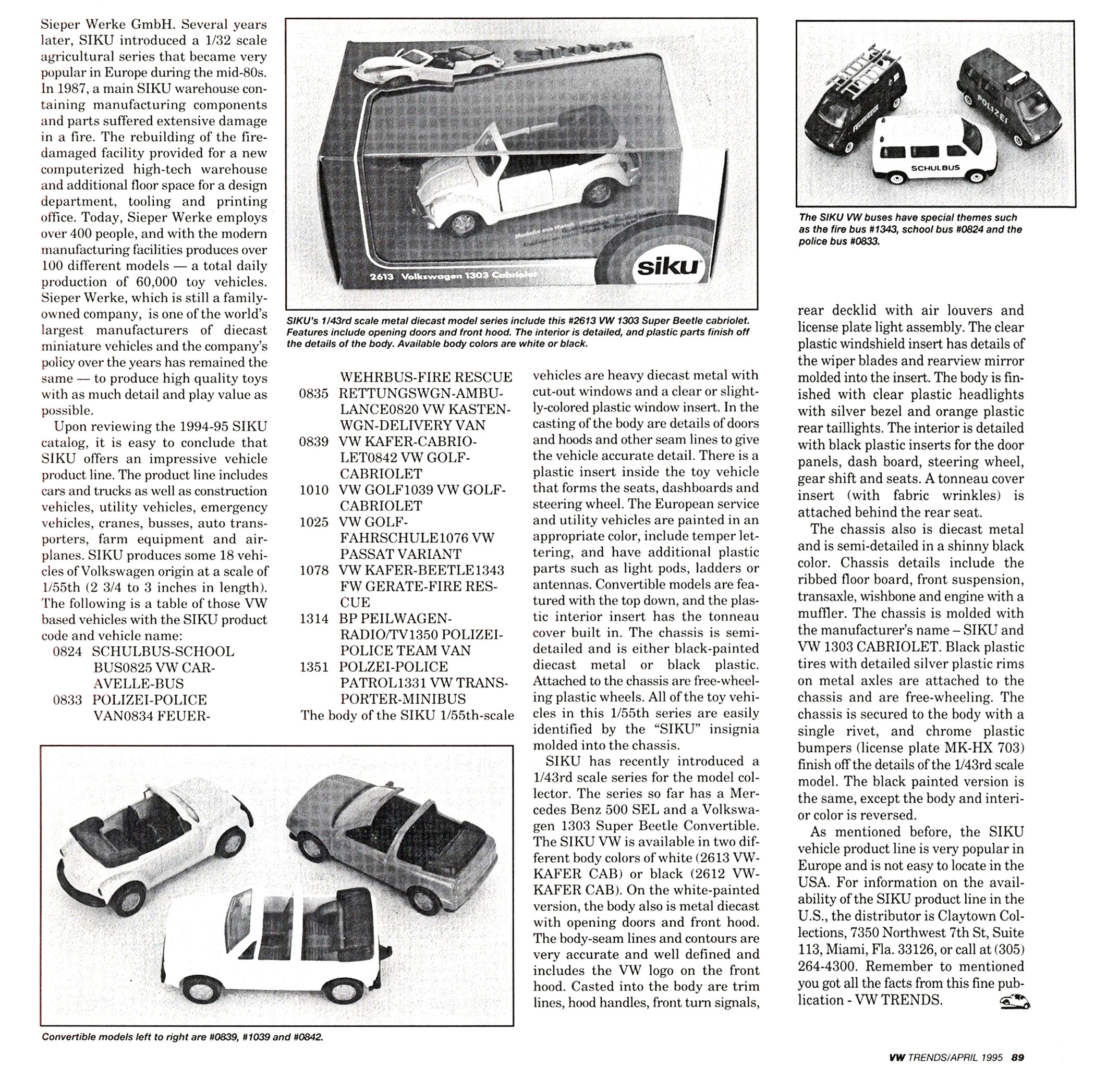 The German company SIKU produces some 18 vehicles of Volkswagen origin at a scale of 1/55 (2 ¾ to 3 inches in length).