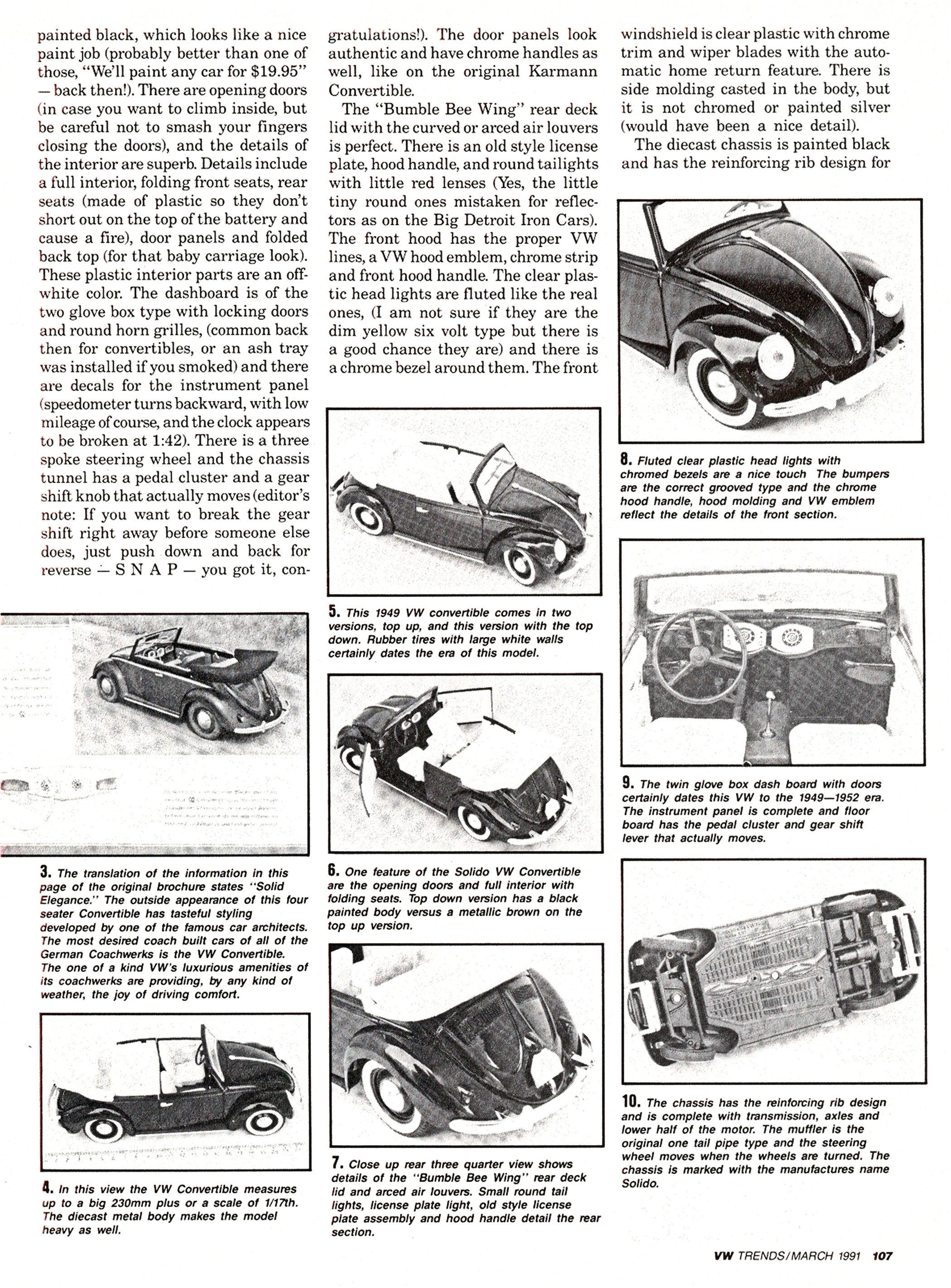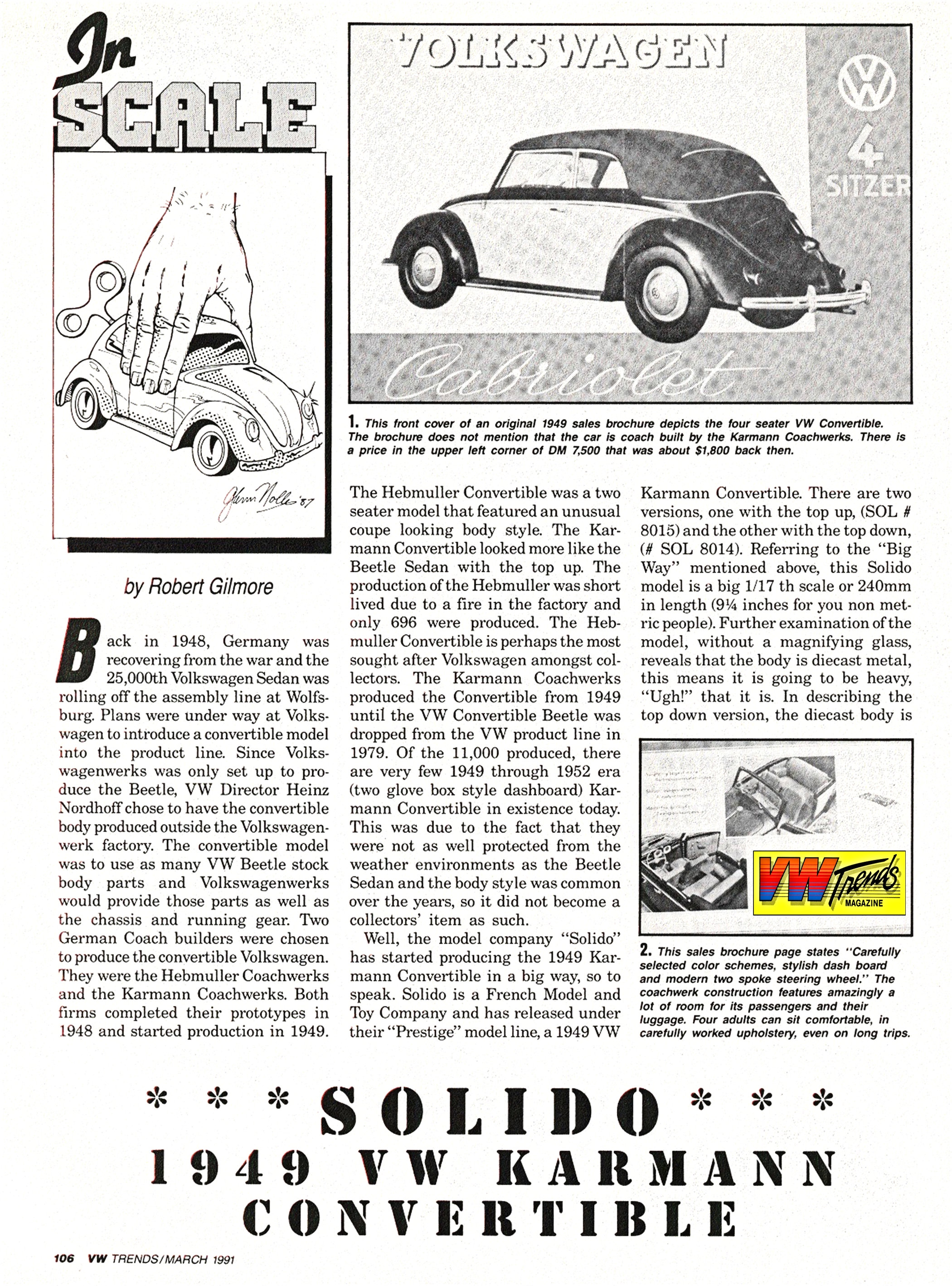 Well, the model company “Solido” has started producing the 1949 Karmann Convertible in a big way, so to speak. Solido is a French Model and Toy Company and has released under their “Prestige” model line, two versions of the 1949 VW Karmann Convertible.