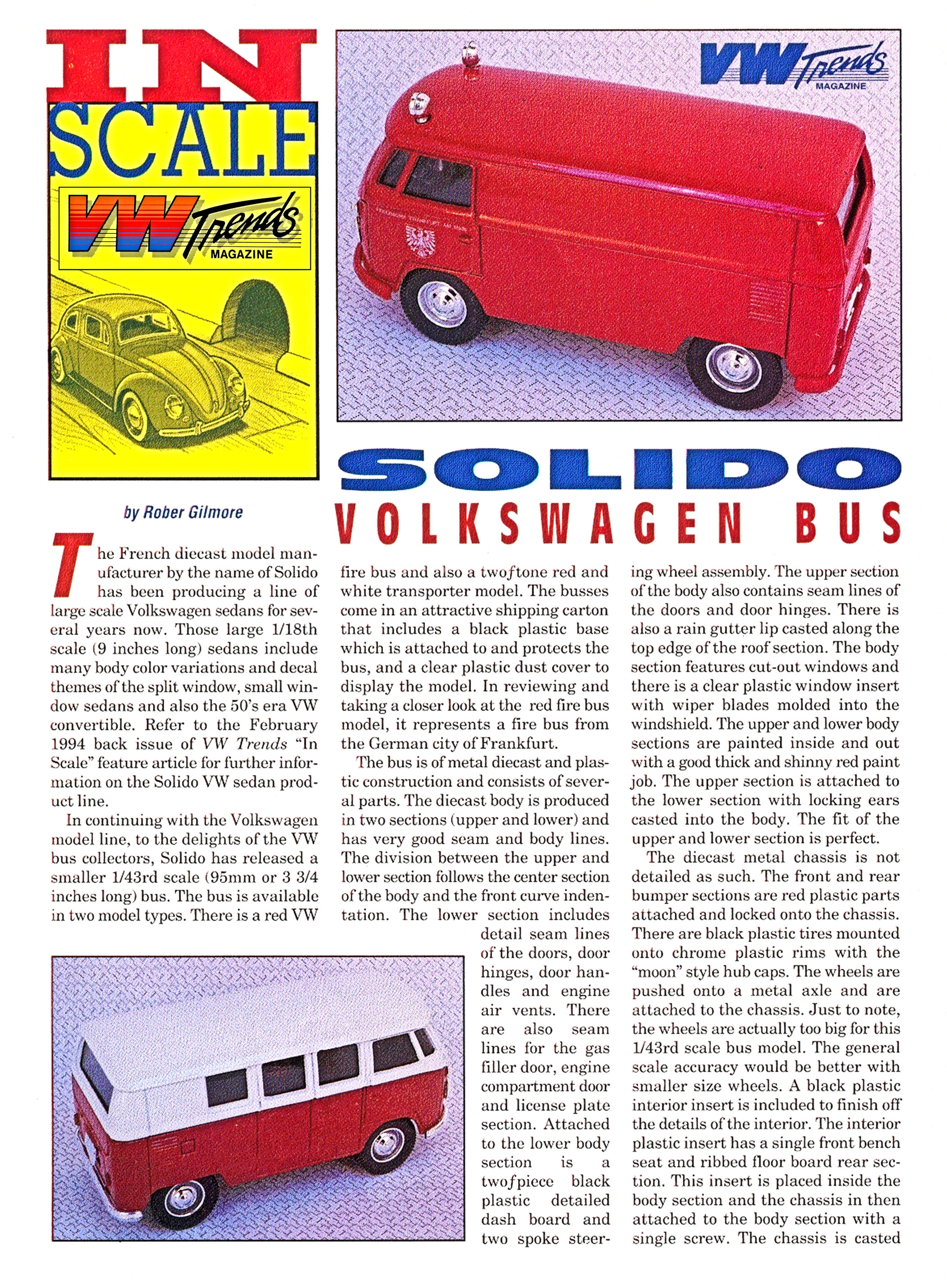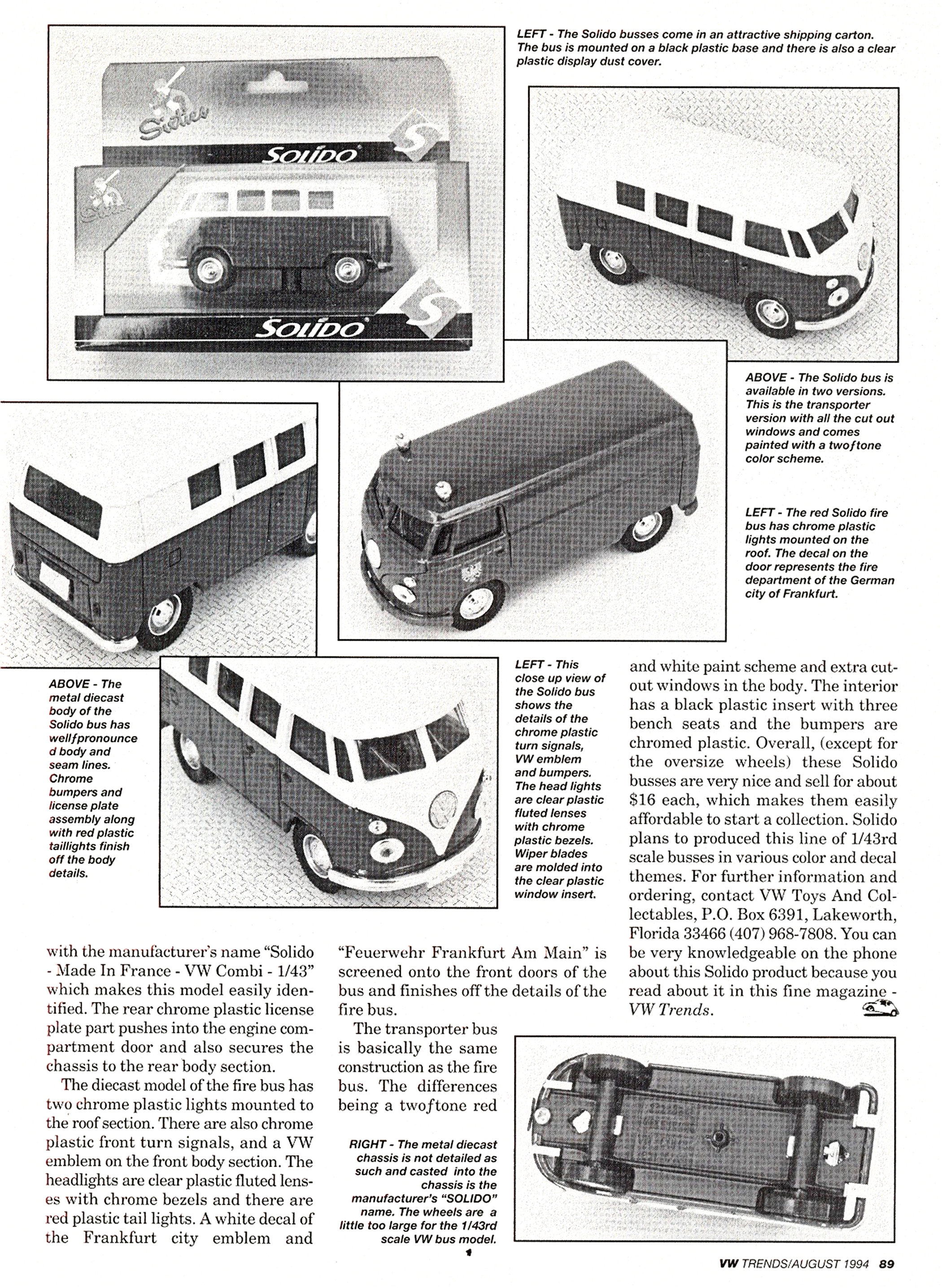 In continuing with the Volkswagen model line, to the delights of the VW Bus collectors, SOLIDO has released a smaller 1/43 scale (95mm in length) VW Bus in two model types.
