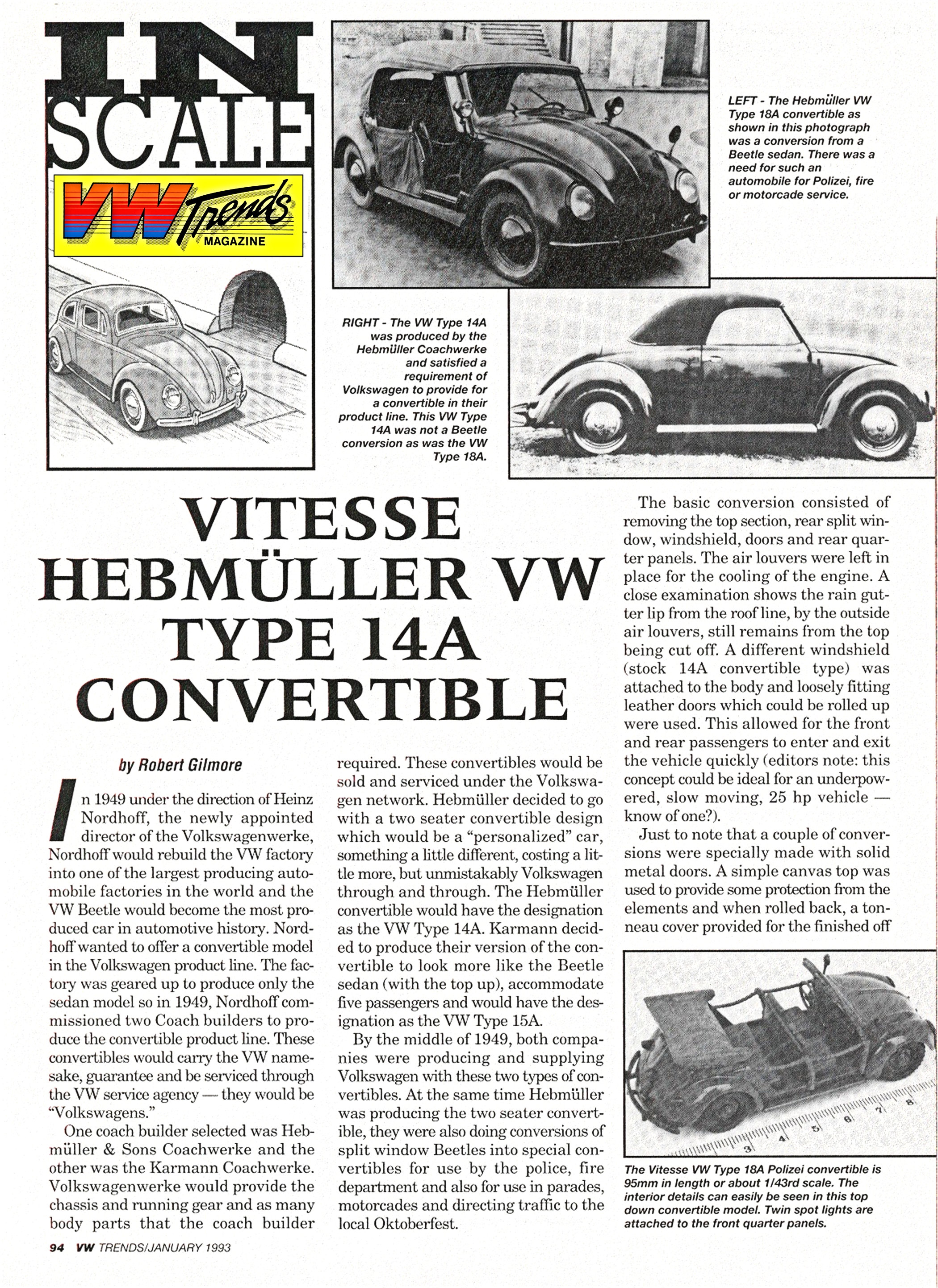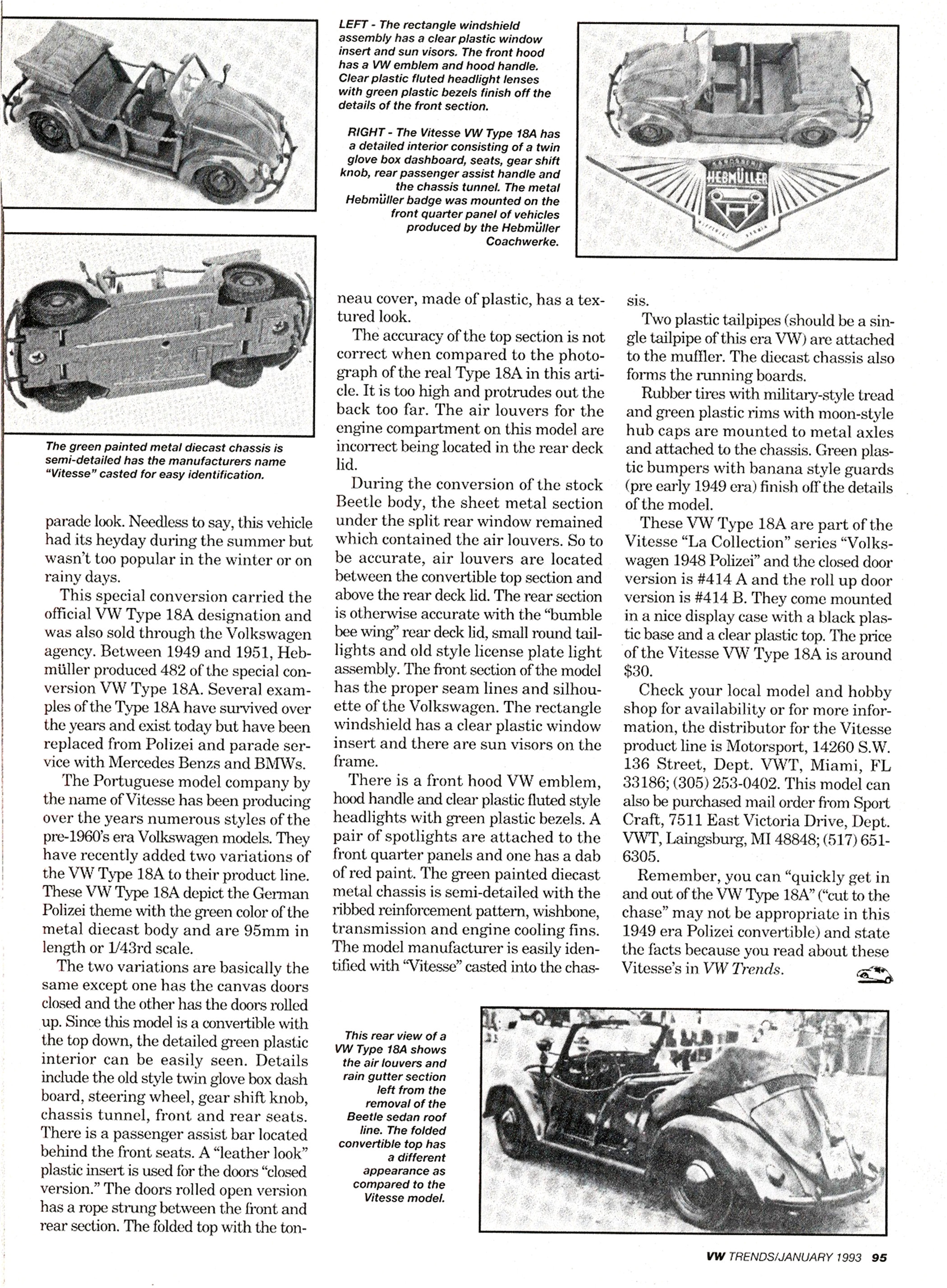 The Portugal model manufacture, Vitesse (who has been producing many different kinds of models for several years) has recently released under the “La Collection” series a HEBMÜLLER VW Type 14A Cabriolet.