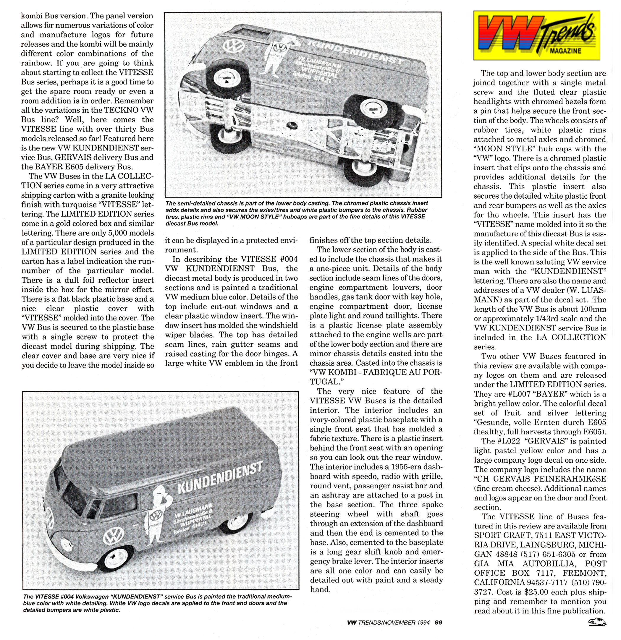 Attention VW Bus enthusiasts! Portugal model manufacture, Vitesse (who has been producing many different kinds of models for several years) has recently released under the “La Collection” a VW Bus series.