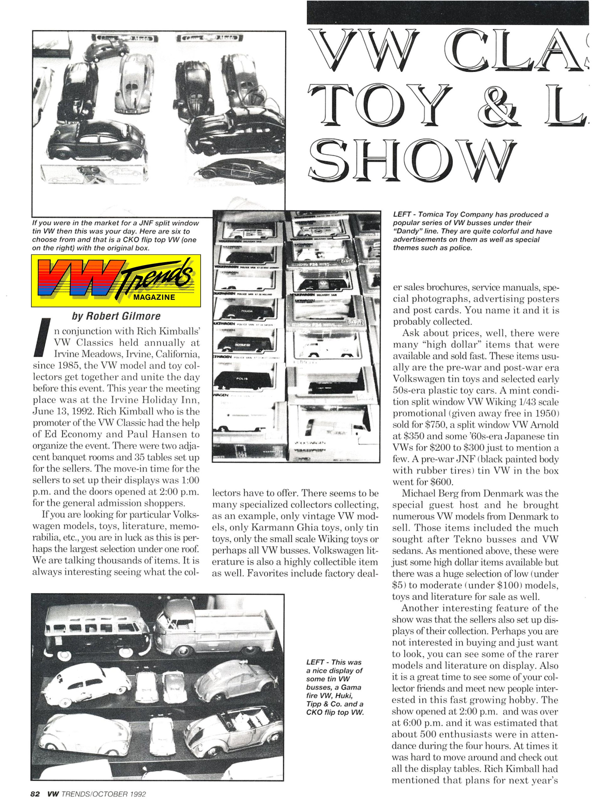 A peek at the VW CLASSIC Toy and Literature Show way back in 1992.