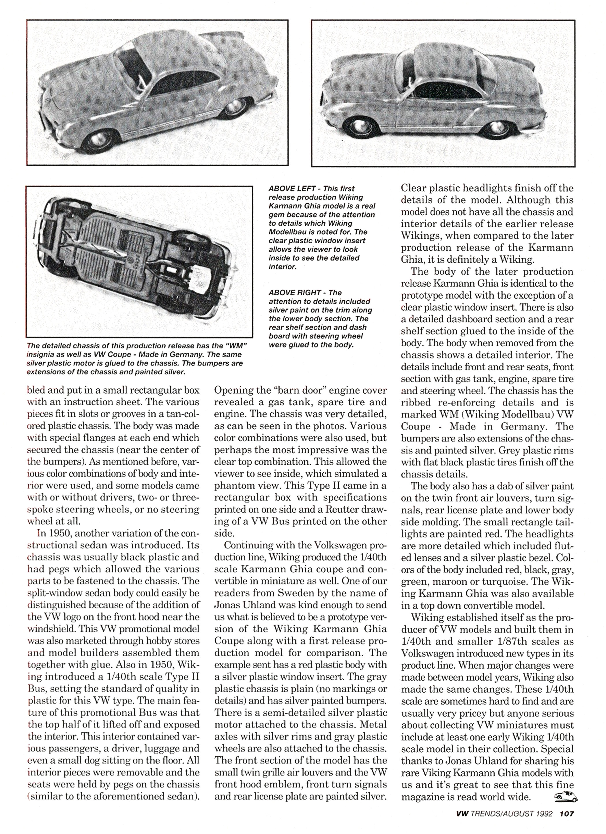 WIKING Modellbau of Berlin was commissioned to build a plastic promotional model of the Volkswagen Sedan. A simple way of producing the VW silhouette in a more accurate look is to produce the toy or model using the plastic injection mold process.