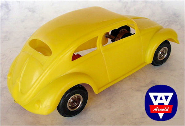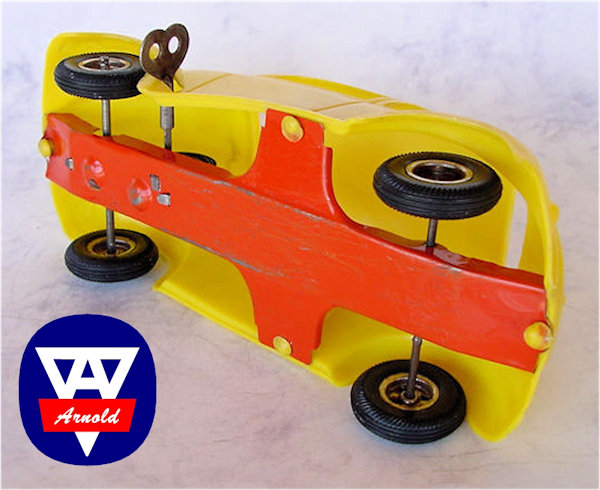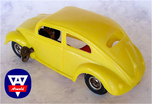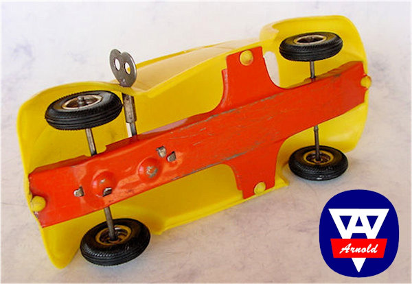 Arnold GmbH & Co KG was founded in 1906 by Karl Arnold in Nürnberg, Germany. They did quite well and by 1940, they had 4 company locations. Only the location in Mülhouse survived the war and from November 1945, production slowly was resumed from this location. Later the other locations were rebuild. In 1952, Arnold was the first in Germany to produce hard plastic bodies for their toy cars. This was the start of a very prosperous era for plastic toys and the beginning of the end for tin plate toys. As from 1960, Arnold concentrated themselves mainly on production of trains (N-size) and accessories for trains.