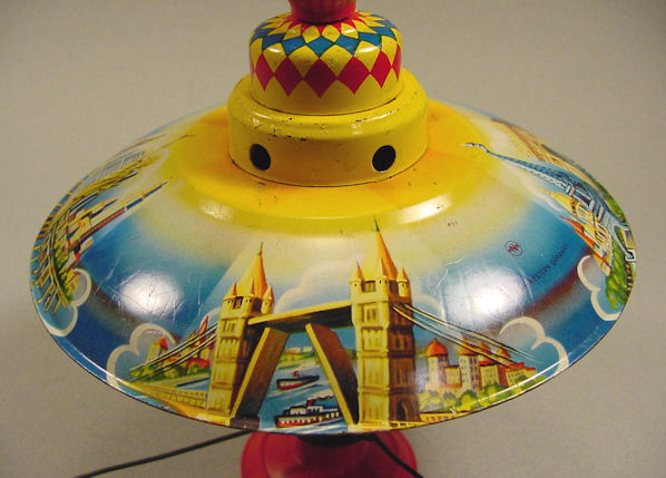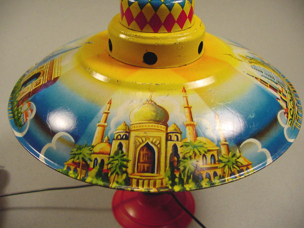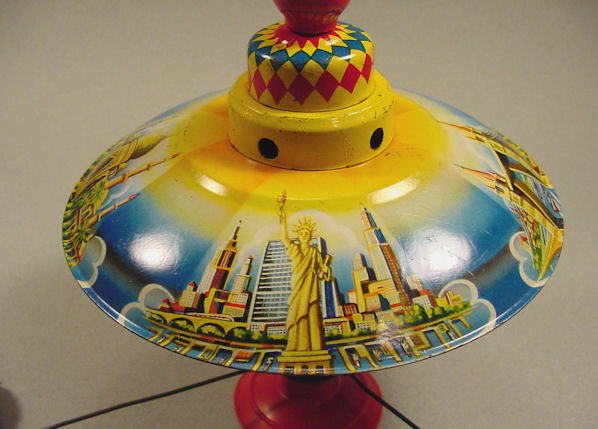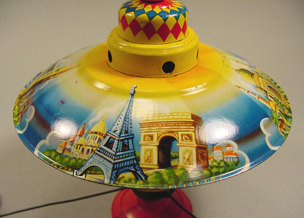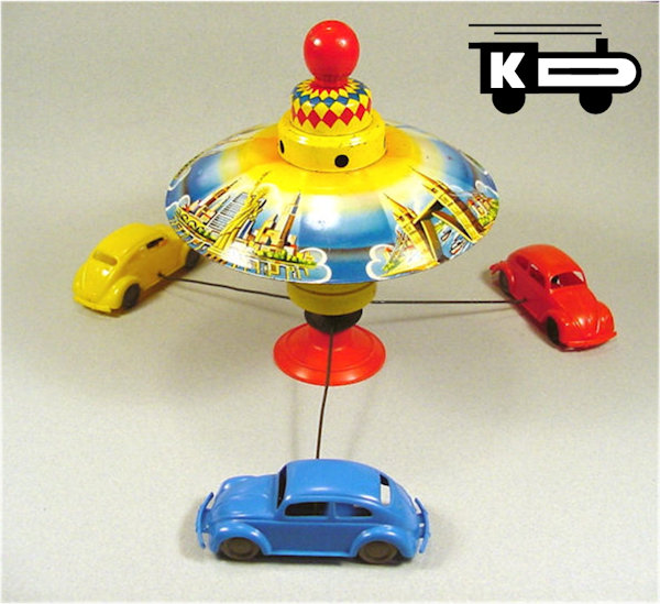There was a spinning top produced by Michael Nuesslein, Nürnberg, Germany, with colorful lithograph landmark scenes of New York, London, Paris and Taj Mahal. The top has three metal arms with DRESSLER VWs that spin around the base as the top spins. The VWs are as described above.