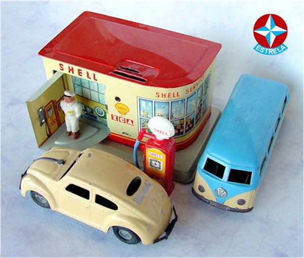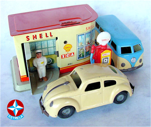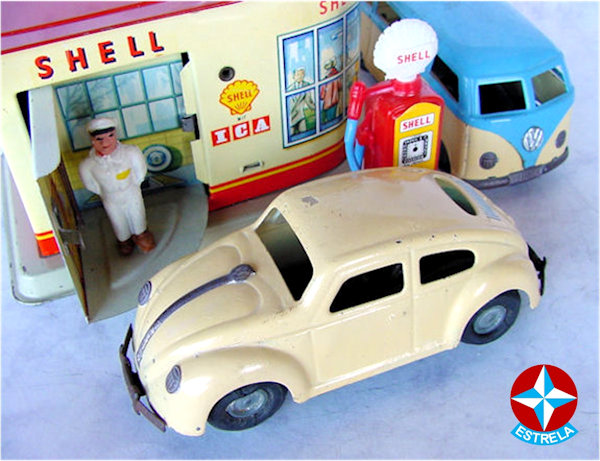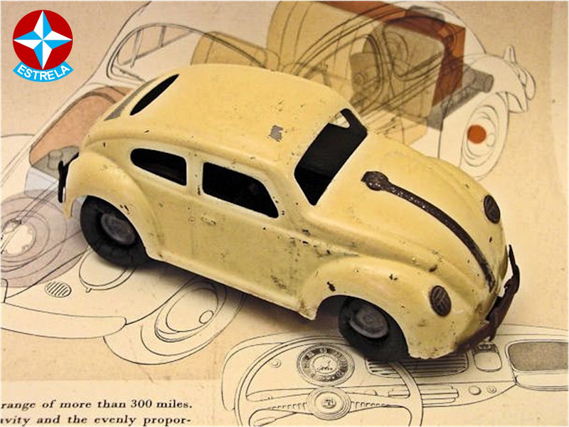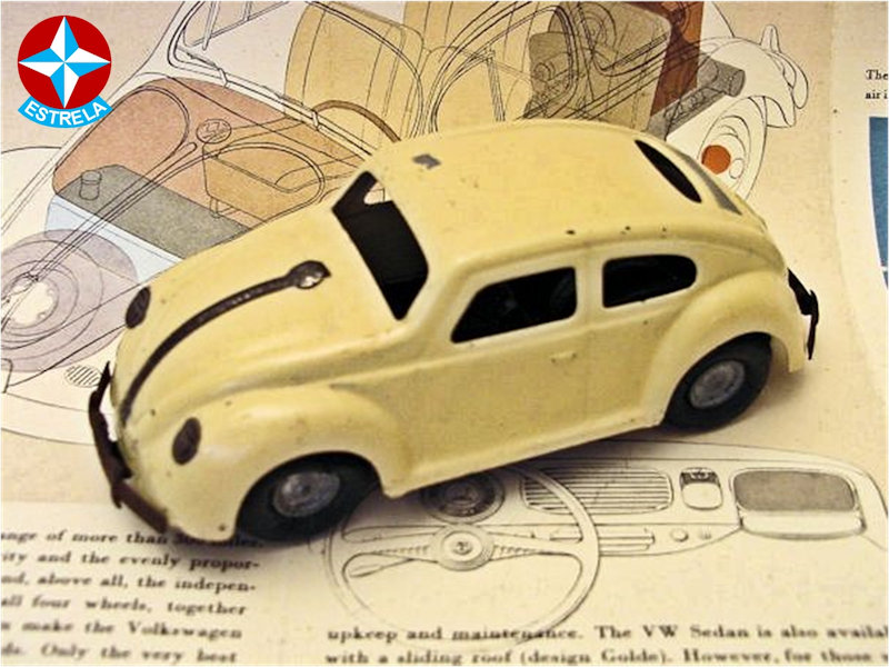 ESTRELA was founded in Sao Paulo, Brazil, in 1937, by German immigrant Siegfried Adler. He acquired the remains of a bankrupt toy factory which produced rag dolls and wooden toys cars. This production initially was continued, but later, in the early 1950’s they started producing plastic and tinplate toys as well. A Sao Paulo based company named MIRIM, later renamed into ATMA Paulista, produced the plastic toy cars for ESTRELA.