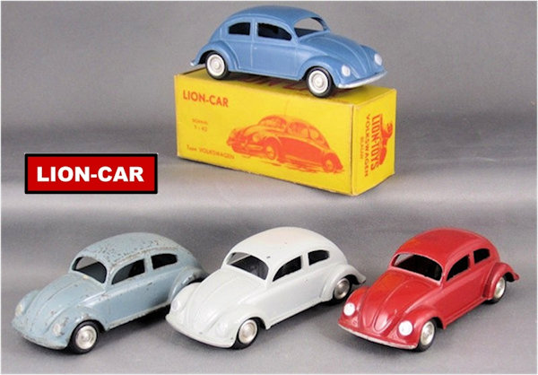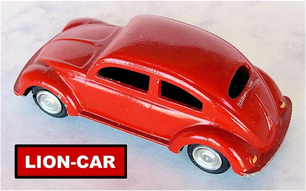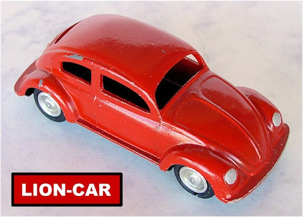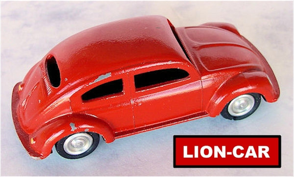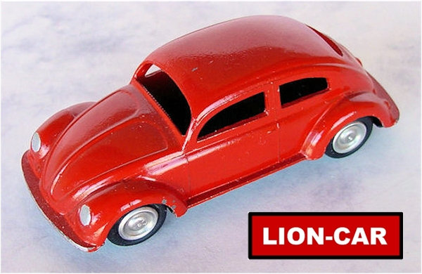 LION TOYS is manufacturer of toys cars from the Netherlands. The brand was established in 1946 by Mr. Arie van Leeuwen in the town of Wassenaar and they later moved to the town of Nistelrode. Initially, they produced tin train sets, but also some toy cars. The Oval Window Volkswagen Beetle was produced from 1956 (the Beetle originally did not have an own box, but was sold to toy dealers in a box of 6). Apart from the VW, several other makes were produced, like the DAF, the Renault Dauphine, Opel Rekord and DKW 3=6. Later they specialized on truck toy cars.