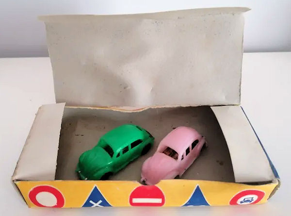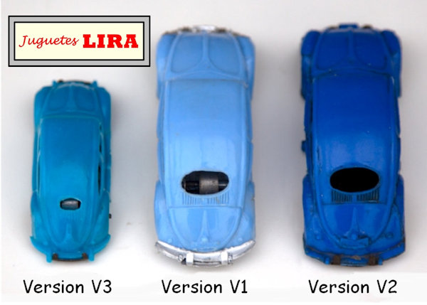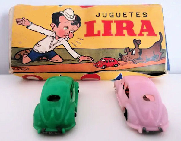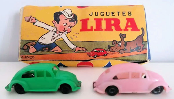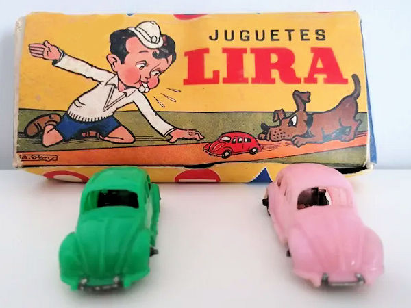 This Oval Window Volkswagen Sedan was produced by LIRA in Ibi Alicante, Spain. LIRA produced plastic toys, but only one toy car is known by them with 100% certainty, the Oval Volkswagen Beetle. There are some rumors about a Citroen DS19 model also. The LIRA Oval VW Beetle was produced in 2 sizes. Please also look at LIRA OVAL VW V1 and LIRA OVAL VW V2