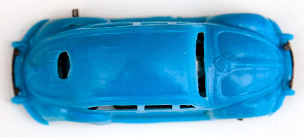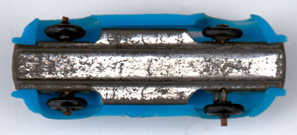 On this LIRA Oval VW V3, the tinplate chassis is held in place with small chassis tabs bent up and over the bumpers.