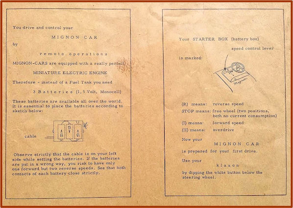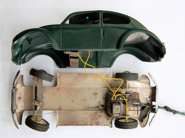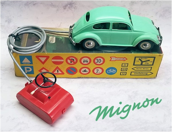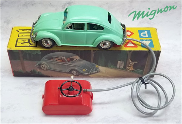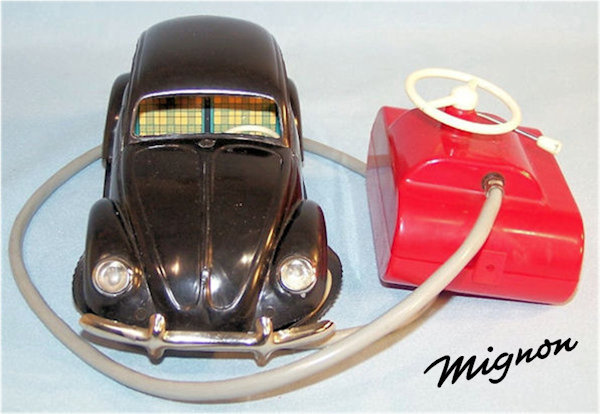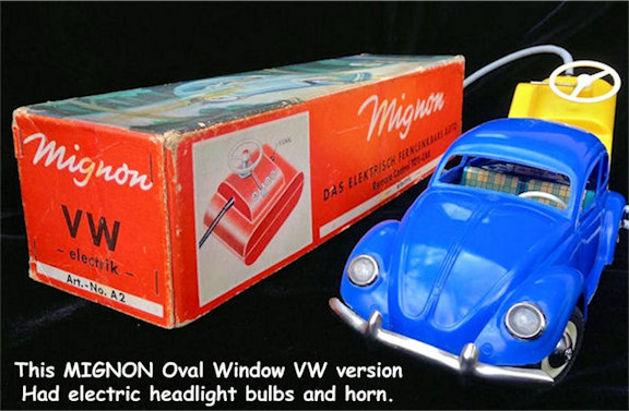 The MIGNON Oval VW V3 was also remote controled that was improved and this version was battery operated. There was still mechanical steering but an electric motor drove the VW forward and backwards. There were even lights and horn.