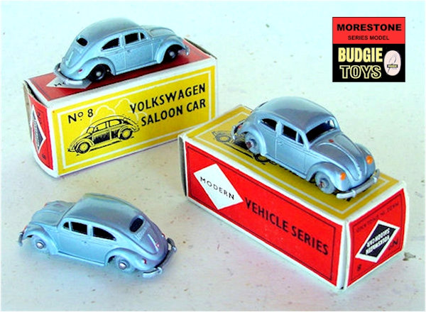 Vintage Volkswagen Models and Toys VW toy review is of an Oval Window Volkswagen toy that has been sold under various names over the years. This 1/70th scale (58mm in length) metal diecast toy was originally designed and manufactured by the Morris & Stone Limited Toy Company. Morris & Stone was located in north London, England during the mid 1950s and sold under the trade name of "MORESTONE." The MORESTONE series consisted of twenty different diecast miniature toy vehicles, including a VW Sedan (NO. 8) and VW Microbus (NO. 12). The MORESTONE series was to compete with the popular Matchbox Toy series during the mid 1950s and the MORESTONE VWs are often mistaken and called a "MATCHBOX" toy.