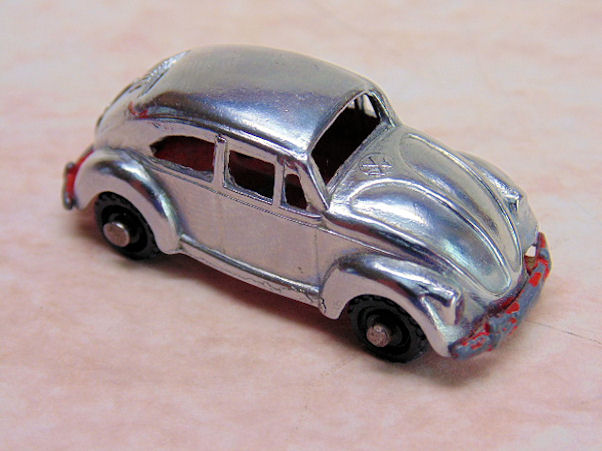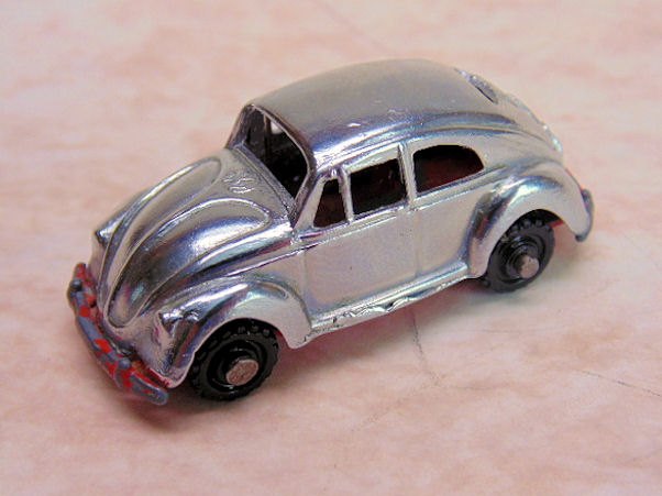 Diecast metal body with cut out windows and fair details of front and rear hood and rear oval window with air louvers. Metal chassis with bumpers may or may not be stamped STREAMLUX – AUST. This Oval VW was listed in the STREAMLUX catalog as NO.9 and was perhaps the last diecast car produced by STREAMLUX. Underwood Engineering Co. Ltd., New Zealand, acquired the tooling and dies in 1962 and then produced a series of small scale cars that were sold under the name of FUN HO. The STREAMLUX Oval VW and the FUN HO Oval VW are basically the same except for the chassis stamping.