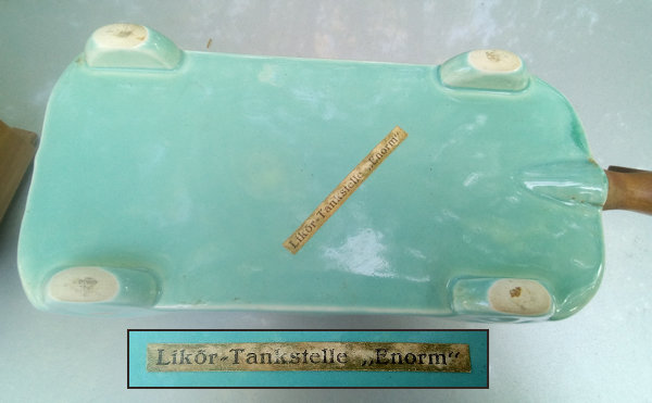 A second variation of the porcelain container has a decal of the German liquor company 'Enorm'. It furthermore has porcelain mugs instead of glass cups and is stamped 'Germany'.