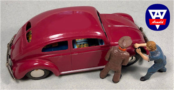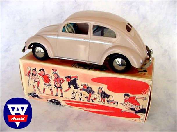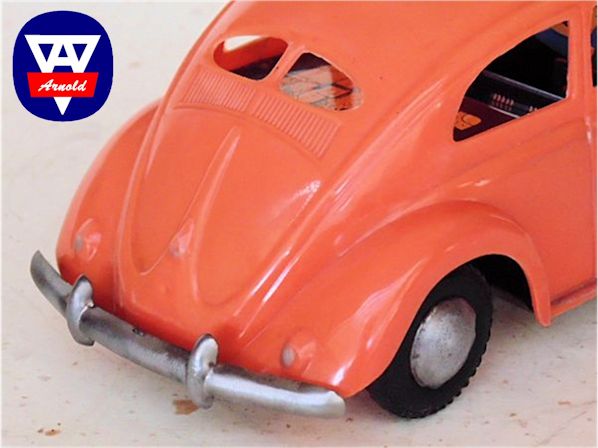 Just to note: there was an ARNOLD VW prototype (1/20 scale, 187mm) made of wooden 5mm planks, glued together and the body with cut out windows was painted red. Good details with engravings for doors, hoods, engine louvers and the roofline. The rear lights and the license plate light were separately attached pieces carved from wood. There was no chassis.