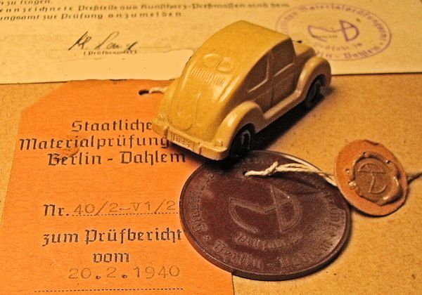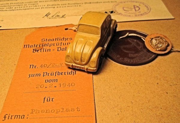 To make a long story short, a German seller had inherited a house and also a warehouse in the former Eastern Germany from his grandfather and in the warehouse he found many pre-war items (mostly non VW related) which were made out of a kind of Bakelite. His grandfather used to work for a company called Kunstharz-Preßwerk Phenoplast Bischoff & Co. in Eberswalde, Germany. This company produced for client’s prototypes of products in Bakelite and/or Celluloid.