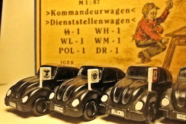 This version of the JGES MEIN KdF WAGEN is basically the same as the regular version with the exception that it features six Kommandeurwagens or Commander Cars for the different organizations within Germany of that time period. These organizations are listed on the box cover.