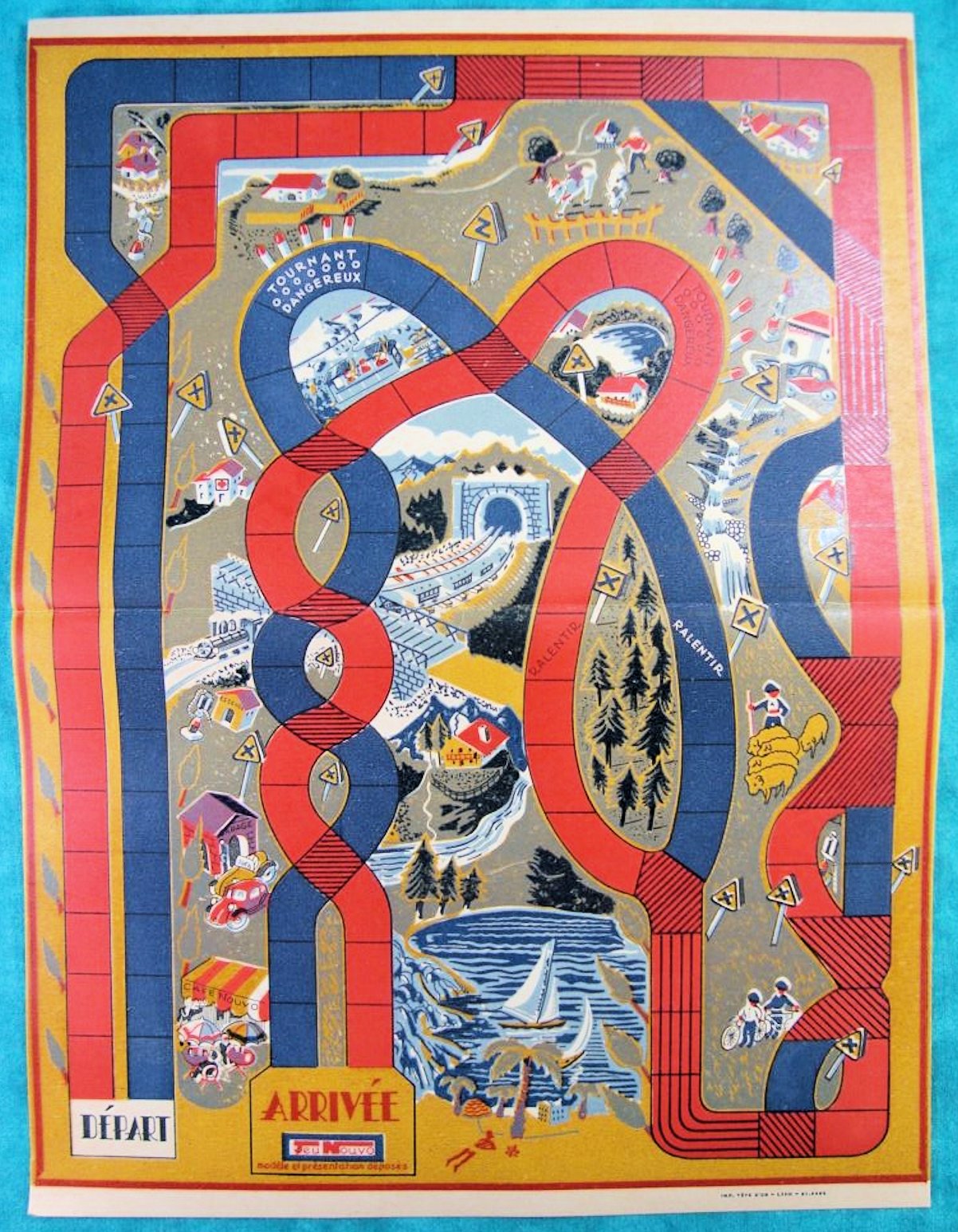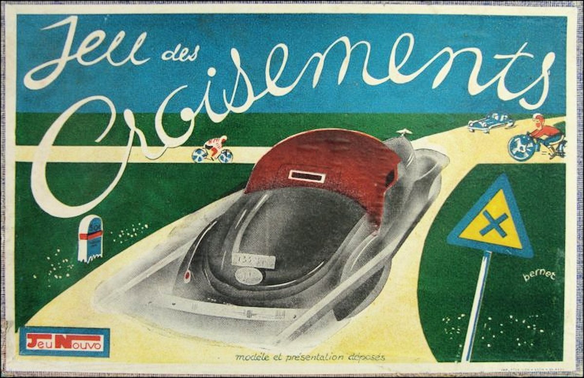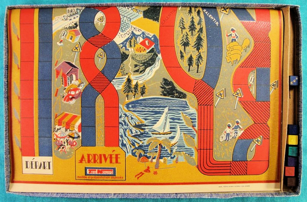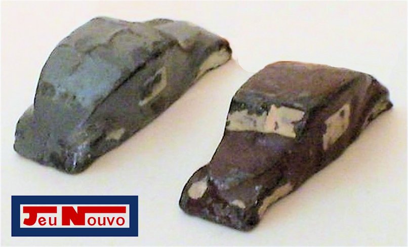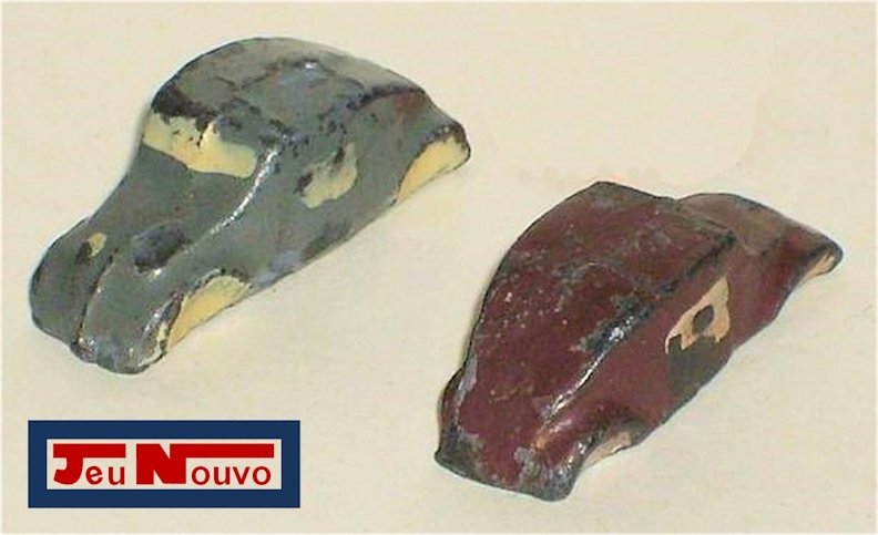 A French manufacturer of toy games named JEU NOUVO, based in Villeurbanne near Lyon, has issued in the 1940 and 50’s a traffic game called JEU des CROISEMENTS (“game of crossings”). The game board measures 33,5 cm by 19 cm. It is a journey through France. The very first version came with simple wooden blocks as game pieces; the later version featured a crudely shaped version of 6 metal Split Window VW beetles. The VW game pieces were made from metal, hollow and the length is 32mm. However, it is NOT confirmed that the game pieces are indeed VW. On the game board a car is visible that resembles the VW in shape, but is NO VW. So....?