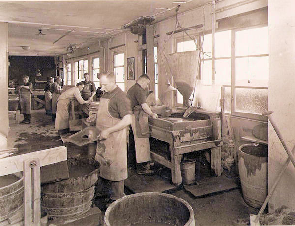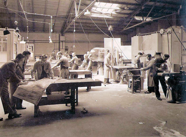 W. KOPPERSCHMIDT & SÖHNE Production Photos: In one of the production photos taken at the W. KOPPERSCHMIDT & SÖHNE factory, one can see that people are working on the Plexiglas parts for the Plexiglas KdF Wagen. In the background on the wall, you can see a picture of the former Reichschancellor.
