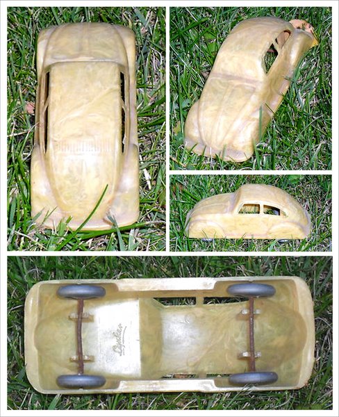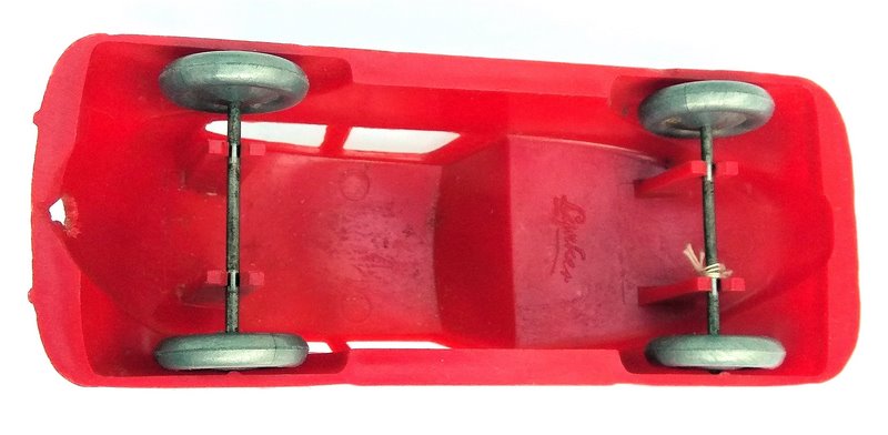 The company of Otto LYNKER GmbH was founded in 1919 in Carthausen in Westfalia, Germany. They produced this VW as a promotional item having a plastic body (thermoplastic, nearly unbreakable as they claimed) with cut out windows and fender skirts. Nice details of the front and rear hood, split window, air louvers, head lights round tail lights. No chassis and the wheels attach to the body with four axle pillars. Under the front hood is marked LYNKER and the rear license plate of LY 3119.
