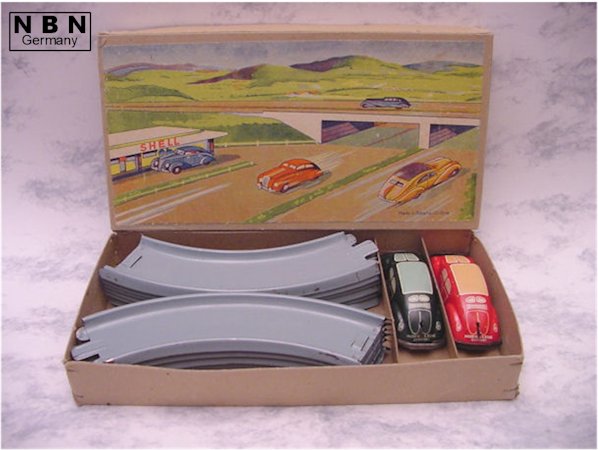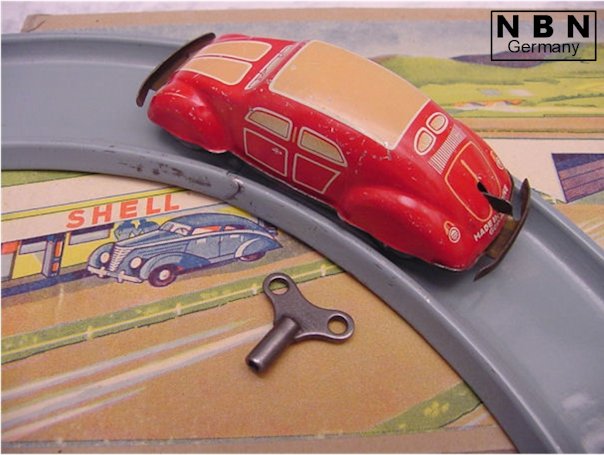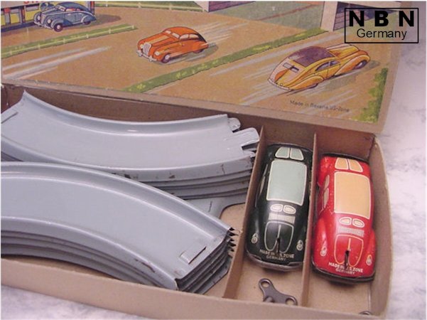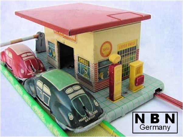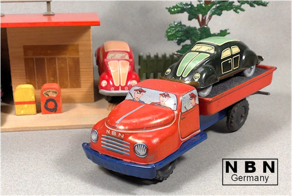 The Nürnberger Blechspielwarenfabrik is de facto the successor of the pre WW2 company of Georg Levy (GELI). Georg Levy emigrated in 1934 because of the fact that he was prosecuted being a Jew. He appointed Mr. Karl Ochs as the new manager and Mr. Ochs subsequently bought the company. This was the start of NBN.