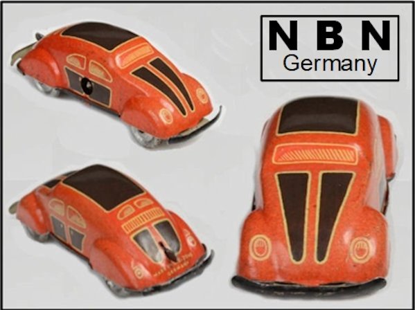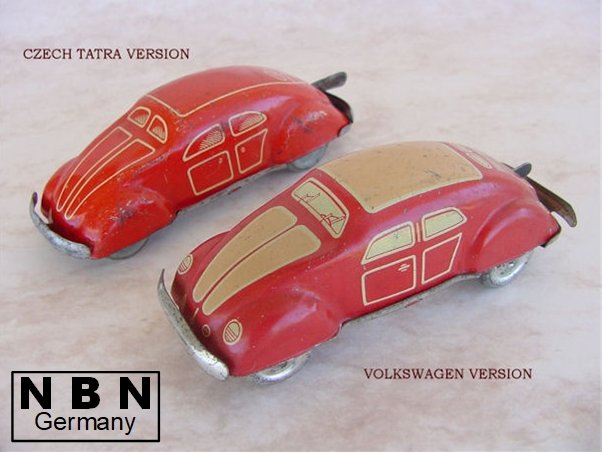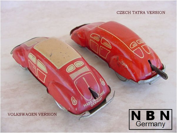 There is a similar NBN car lithographed in orange or green with pin striping (split front window) that represent a Czech Tatra vehicle of the time. This Tatra vehicle is often called and sold as a Volkswagen, which it is not.