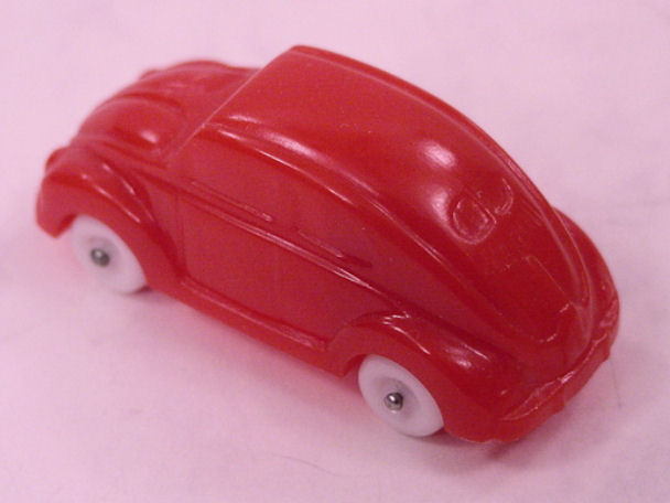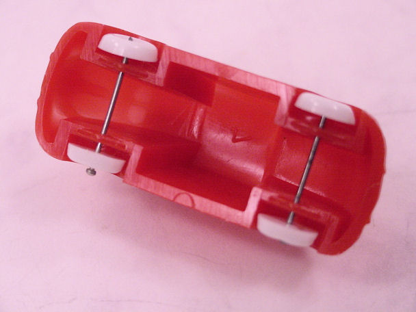 Plastic body with solid windows and details of the front and rear hood, doors and headlights. No chassis and the plastic wheels (red, black or white) are with wire axles attached to the body. There is a reverse number 4, 5, 6 or no number. A mold mark under the roof.
