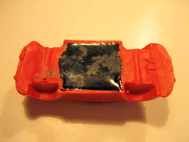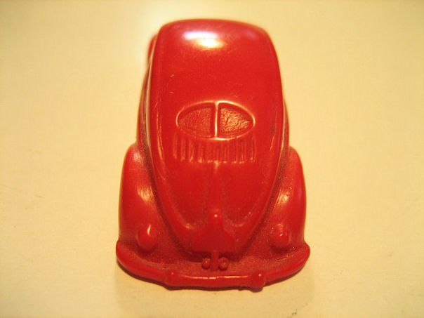 Solid plastic body with solid windows with details of the front and rear hood and doors. No chassis; seems to be a mold or possibly a later copy? Marked with “TY”.