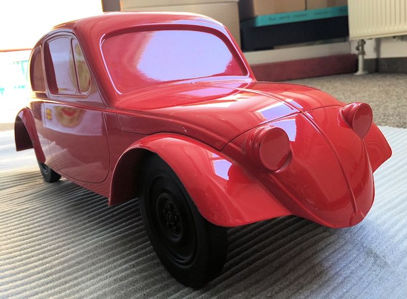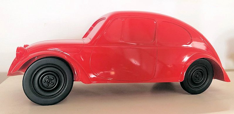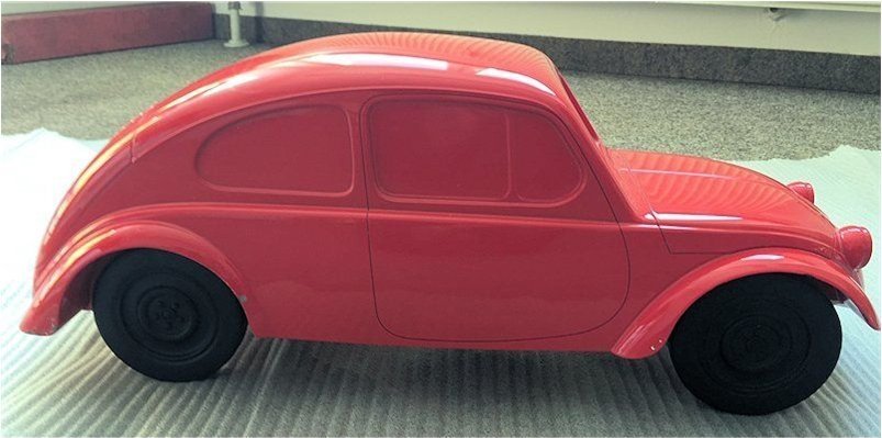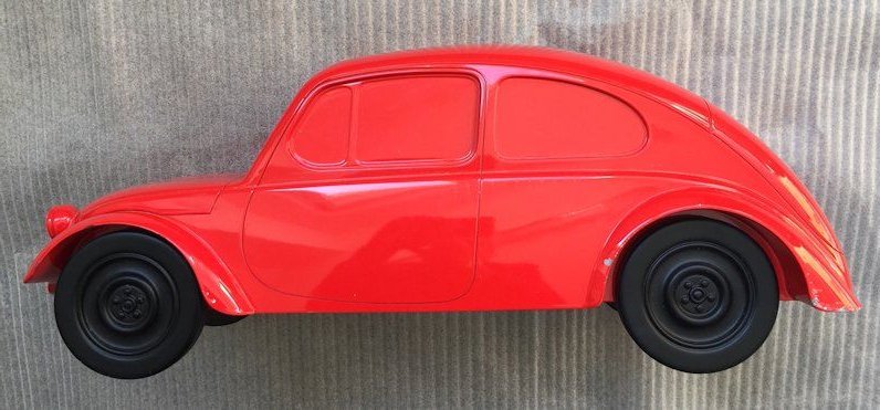 The Volkswagen factory (VW Versuchsbau) has produced this 1937 model V3/2 in 2008. This model was milled (on basis of the CAD data of the original V3/2) from 1 piece of resin with the wheels separately attached to the body.