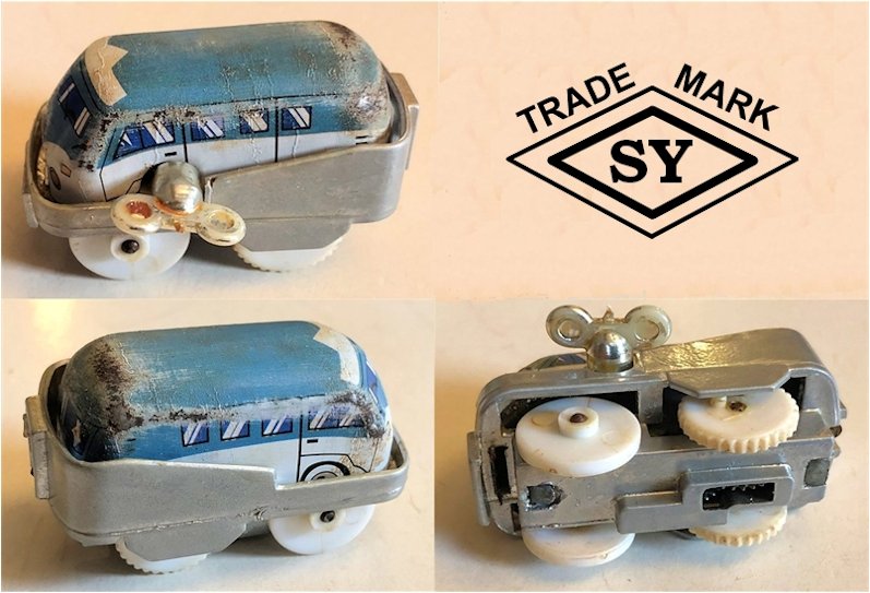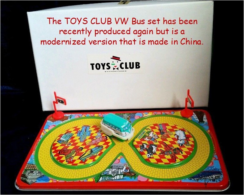 The TOYS CLUB VW Bus set has been recently produced again but is a modernized version that is made in China. The track platform has completely different lithograph scenes although the VW Bus design itself looks very similar.