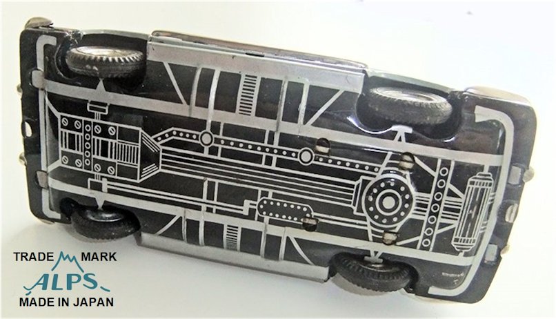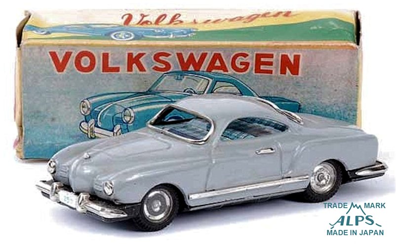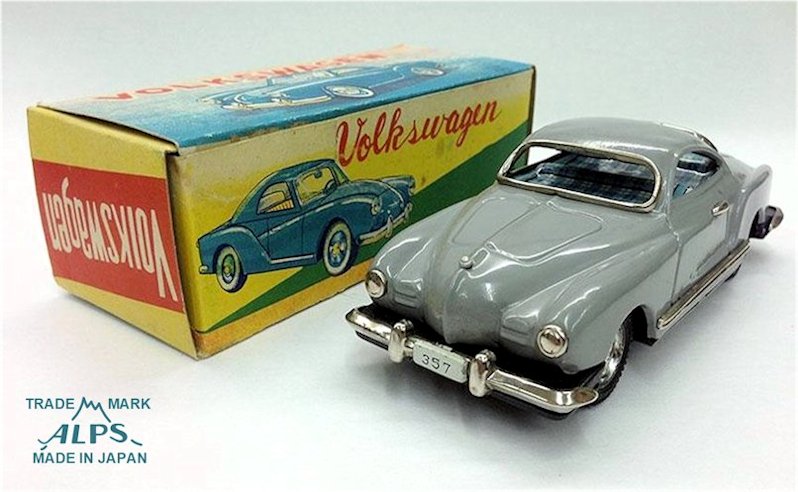 Over the years, the 1955-59 production era of the Karmann Ghia Coupe have become known as the “Lowlight” Ghia because of the low position of the headlights and the two louvered front air grilles. These ALPS VW Karmann Ghia’s are collector’s items sought after by Vintage VW toy collectors as well as by Japanese tin car collectors in general. From time to time, they can be found searching on the online auctions. Good luck and happy collecting.