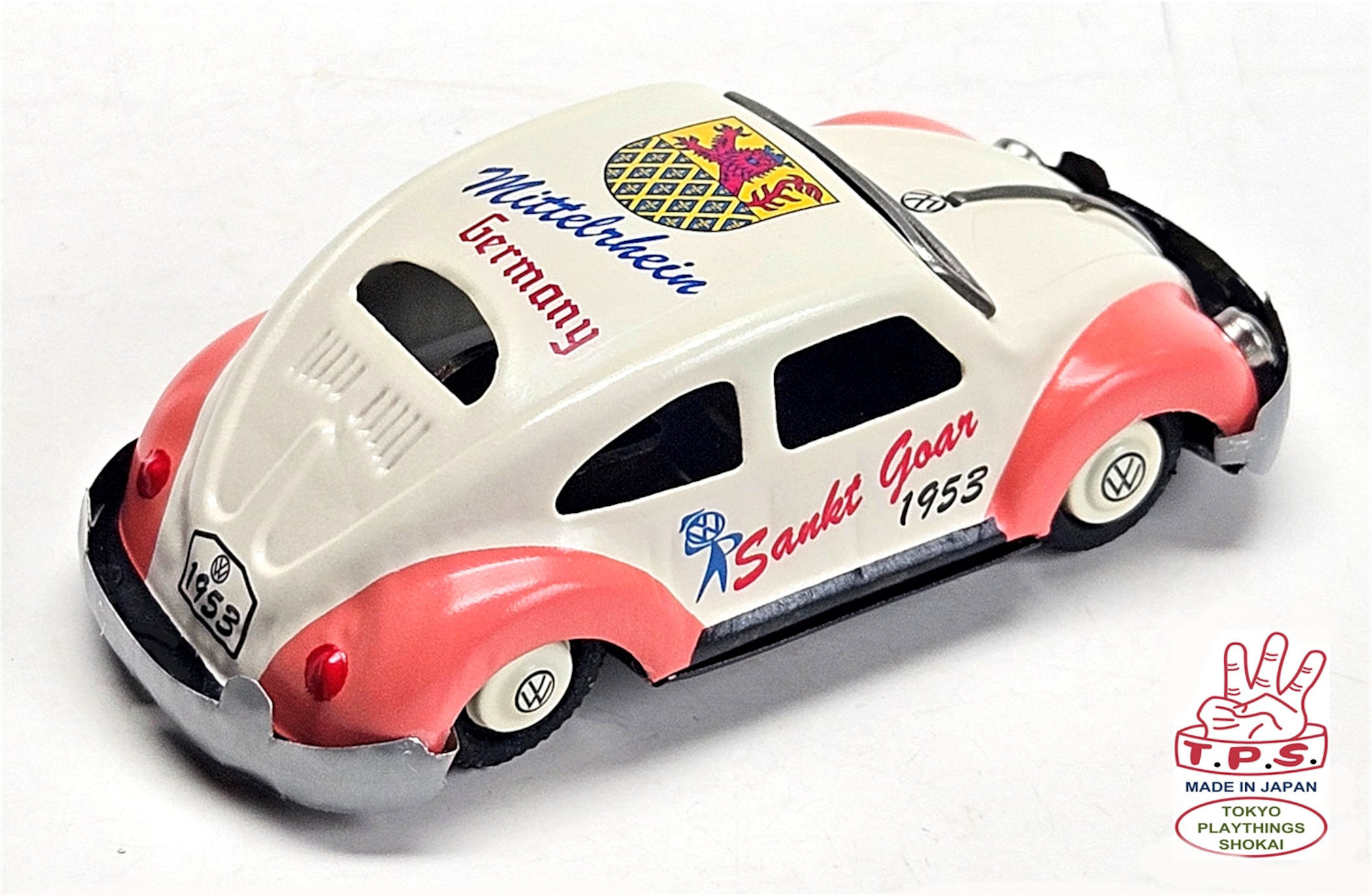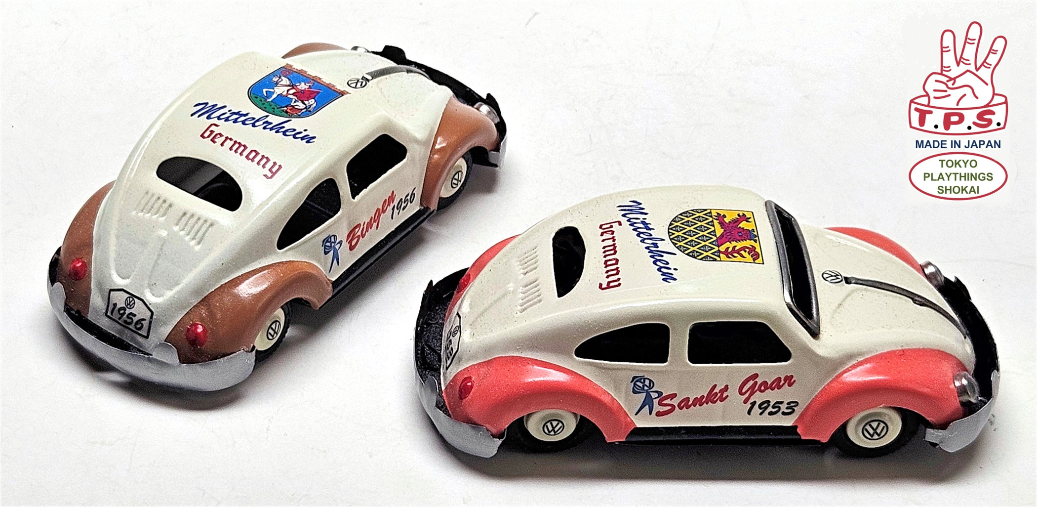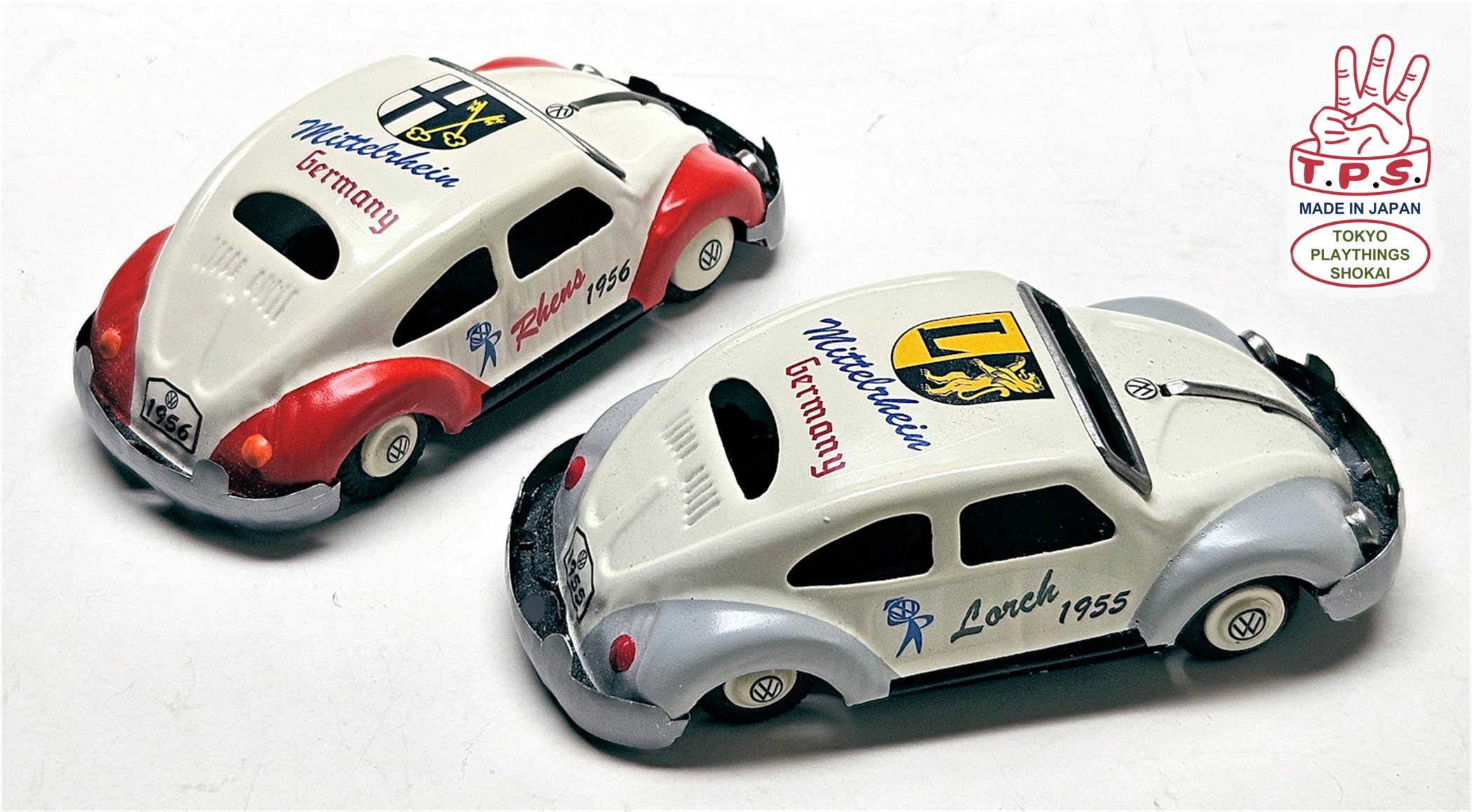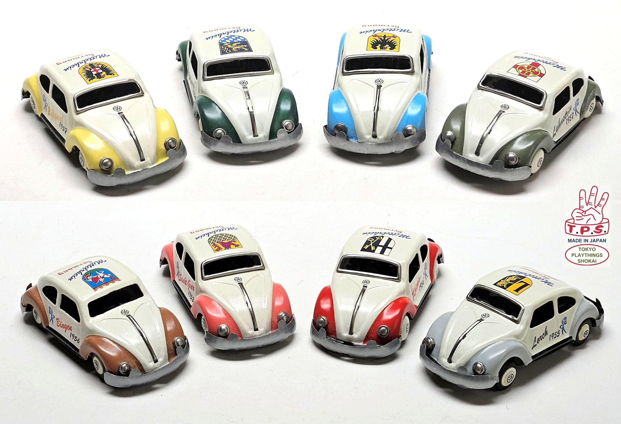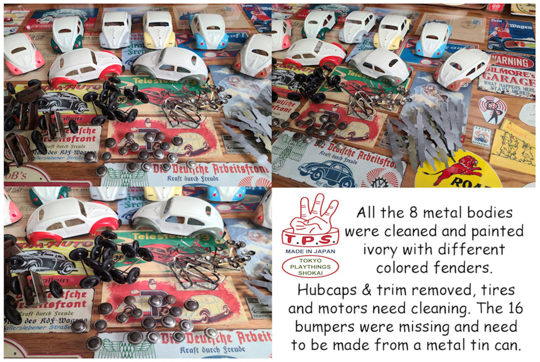 These 8 T.P.S. (TOKYO PLAYTHING SHOKAI) 1950 era Oval Window VW tin toys were collected over the years and all of them were well played with, dented, broken, rusty, missing bumpers and all in need of repair. They would all be going through the Restor-Version Shop and the theme for these 8 vintage 1950s era T.P.S. Oval Window VWs were to be toy souvenirs from different tourist towns of the Mittelrhein area of Germany. The 8 towns included Boppard, Sankt Goar, Bacharach, Oberwesel, Bingen, Lorch, Rhens and Lahnstein.